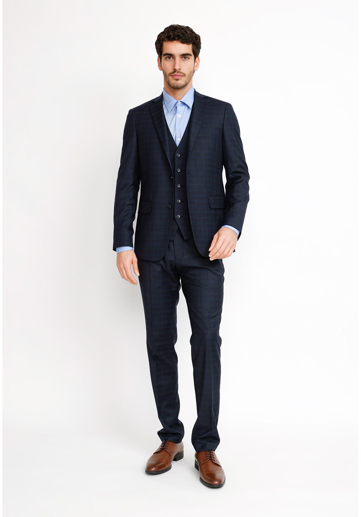 Pantalón formal hombre, traje Suit Separate, tela de cuadros en mezcla de poliéster, viscosa y elastano, stretch, con tecnología Machine Washable y Tumble Dry (se puede lavar en la lavadora y permite uso de secadora a temperatura baja), Spill Resistant (evita manchas de líquidos), con dos bolsillos laterales y dos bolsillos atrás, cómodos, calce Slim Fit.