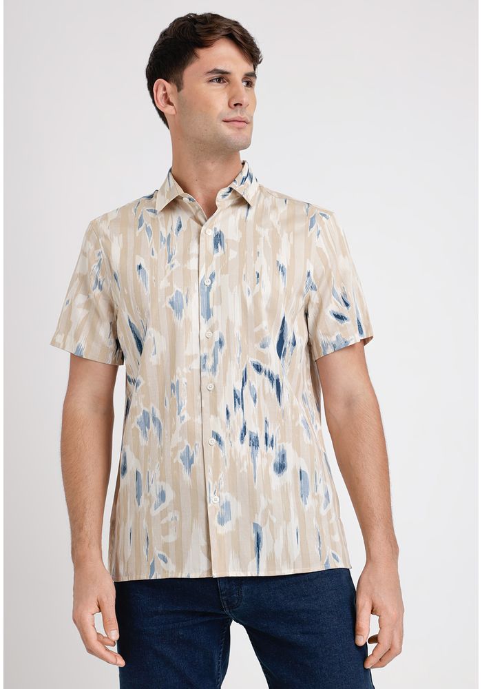 Camisa Hombre Manga Corta Estampada Avena